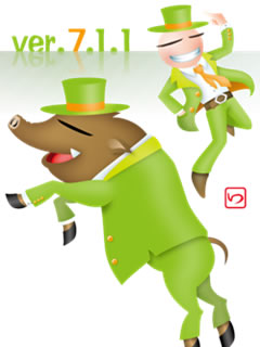 デザインが決まらず散々迷った挙句に「イノシシ&ひよろにスーツでポーズ」という安直策に走った結果であることは言うまでも無いわけですがw。