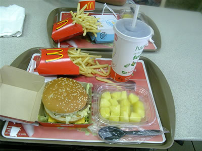 バーガーやポテトのサイズは日本と変わらない印象ですが、ドリンクがでかい。