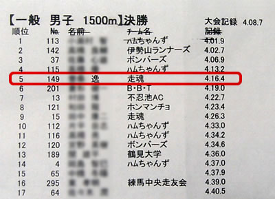 本命1500m。4’10は壁です。。。_| ̄|○