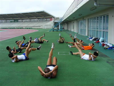 翌日試合のため、消防隊式ブートキャンプは辞退して撮影班w。