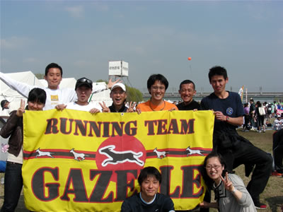 12km地点にて、GAZELLEのO氏、K氏と流山CJのD氏。