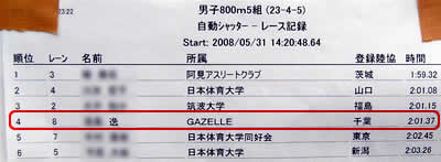 この前の都民陸上も2’01