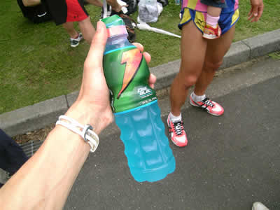 禍々しい鮮やかな色を放つゲータレードで喉を潤します。
