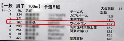 100m。去年より0.1秒落ちちゃったw。