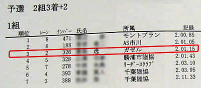 私も11年前の大学時代にこの大会の800mに出たことがありましたが、その時も組によって記録が偏っていましたよ。1組目のトップが2分5秒台。私は次の2組目で、1分59秒台が3人、2分1秒台、2秒台前半が1人ずついて、私は2秒台後半の6番目でゴールしたけど、あと一人というところで落選してしまいました。それでも自己ベストでしたが。。。(^^;)