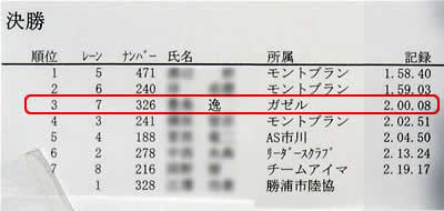 3位入賞おめでとう!1分台まで本当にあと少しだね。