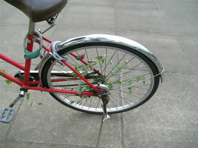 自転車、最初に見たとき、わざとつけているのかと思い、馬鹿にしちゃ悪いかなと思ってだまってました。