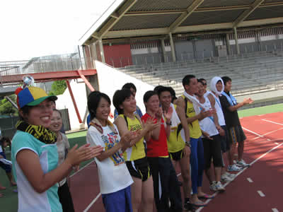 400mトラックで1人2000m走ってタスキを繋ぎ、最後に400mを駆け抜けて42.2kmを走破する、