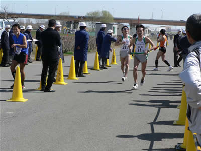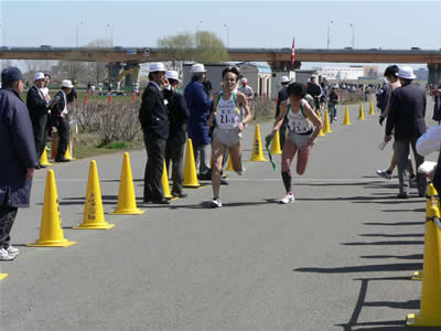 39秒差で渡ったタスキは、折り返し地点を過ぎてまた中継地点へ帰ってくる頃には、