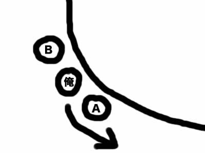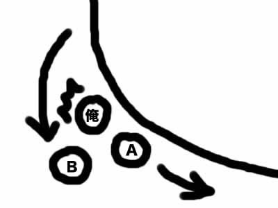 カーブで抜こうとして、外側に膨らむのがイヤだったので、
