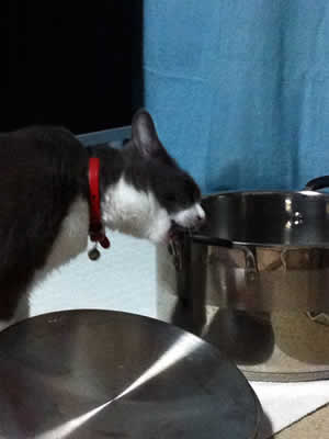 たまに立ってると足元に寄ってきて体をスリスリするデレ具合が萌え。