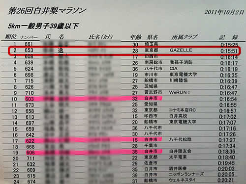3km地点で1人が大分前、俺を含めた3人ぐらいで2~4位争い。
