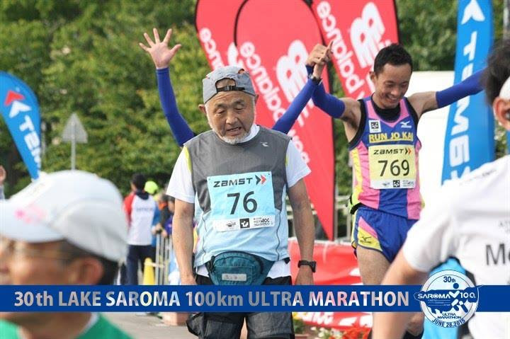 嫁さんがサロマンブルーゼッケン(10回以上完走)のおじいちゃんにすり替わっていた。