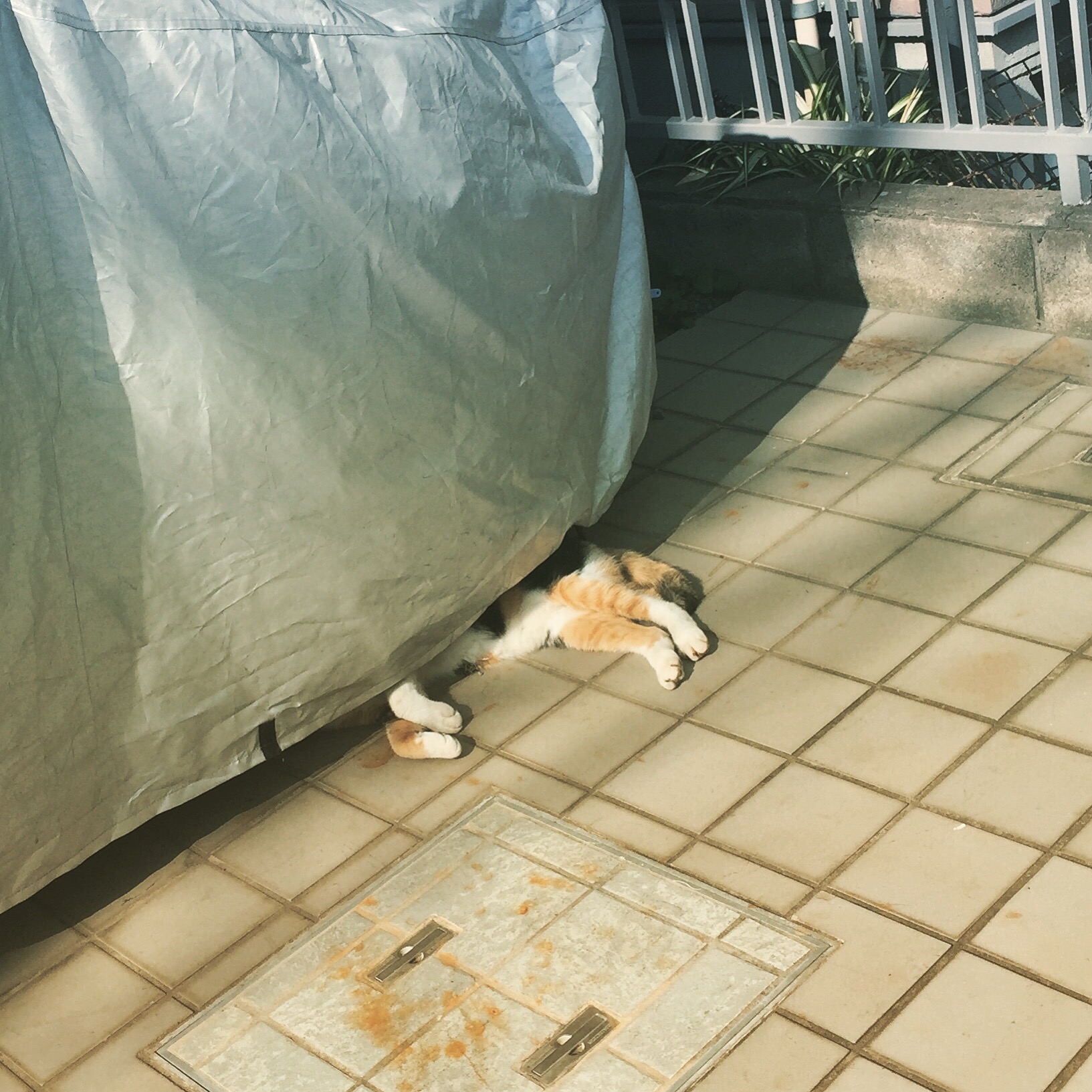 今日は日差しが強いためかこの辺のヌシが我が家をご利用でした。