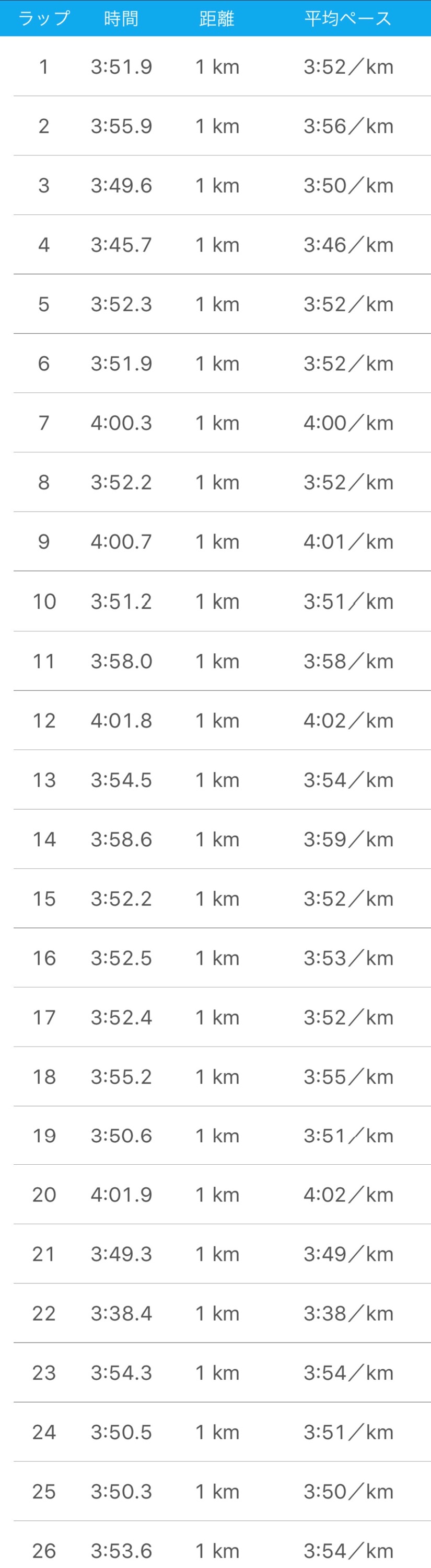 前半は3’50〜4’00/km、後半は3’40〜3’50/kmぐらいに上げて、後半2分のビルドアップでした。