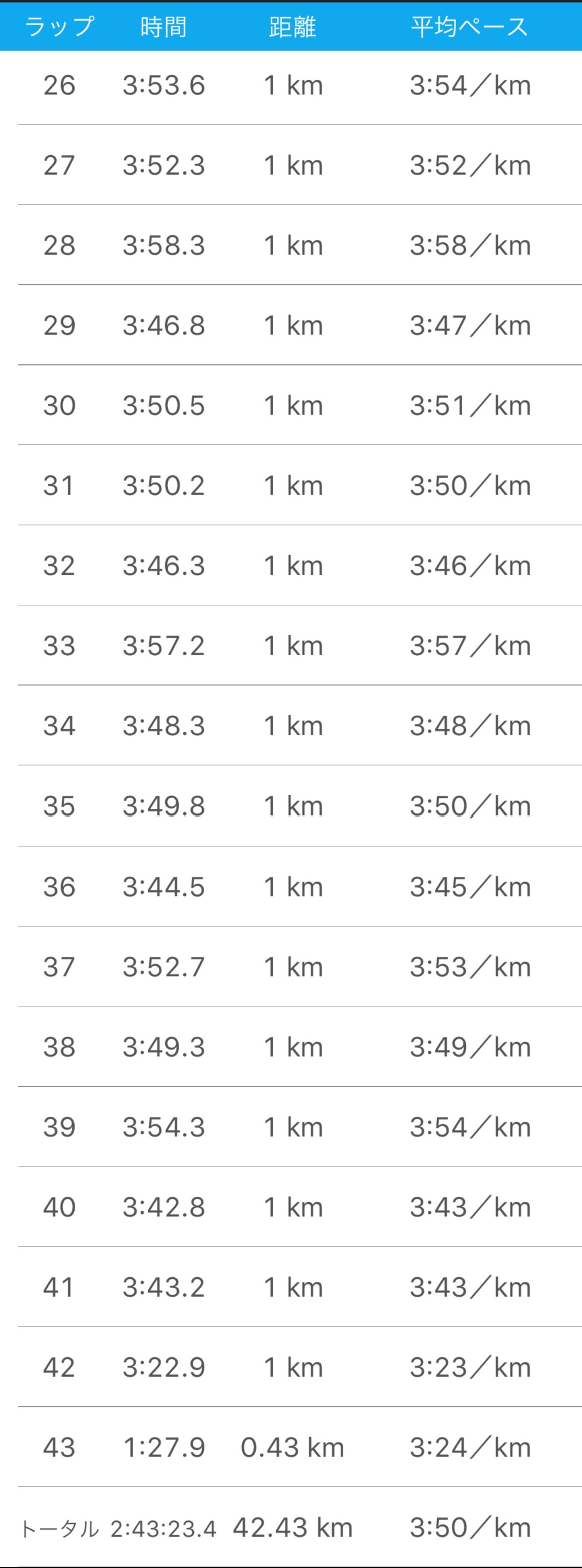42.195km 2:43’25 3’52/km