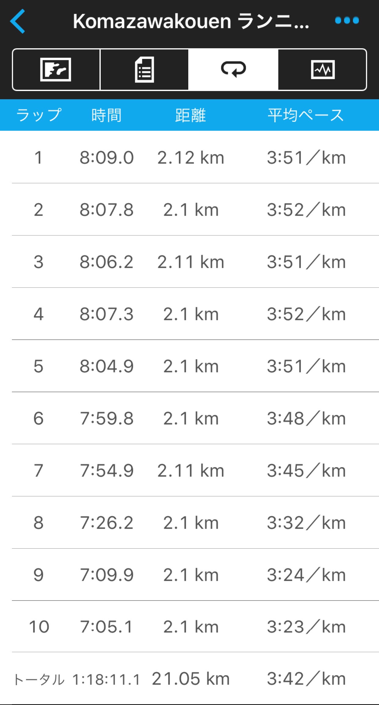フルマラソン1週間後でハーフマラソンの距離走できたのは収穫かしらね。