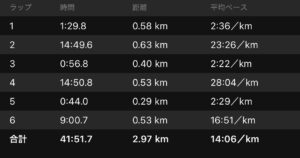 300mはお散歩の方々とぶつかりそうになってスピードだいぶ落としたのでもうちょいタイム出せたかなと。