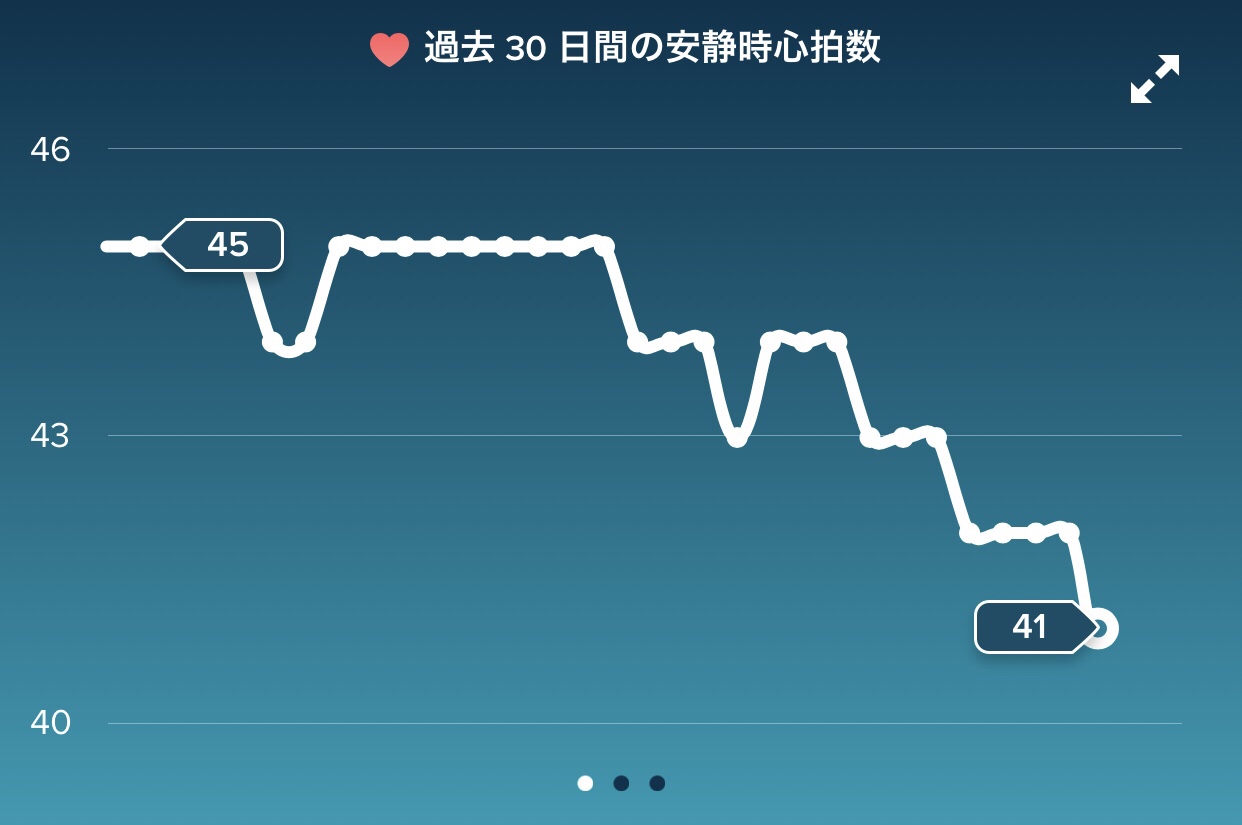 練習すれば疲労するし疲労すれば安静時心拍数も上がる。(らしい)休養して回復してるときに下がるものだろうとは思うのだけど、果たしてどこまで行けるものなのか?
