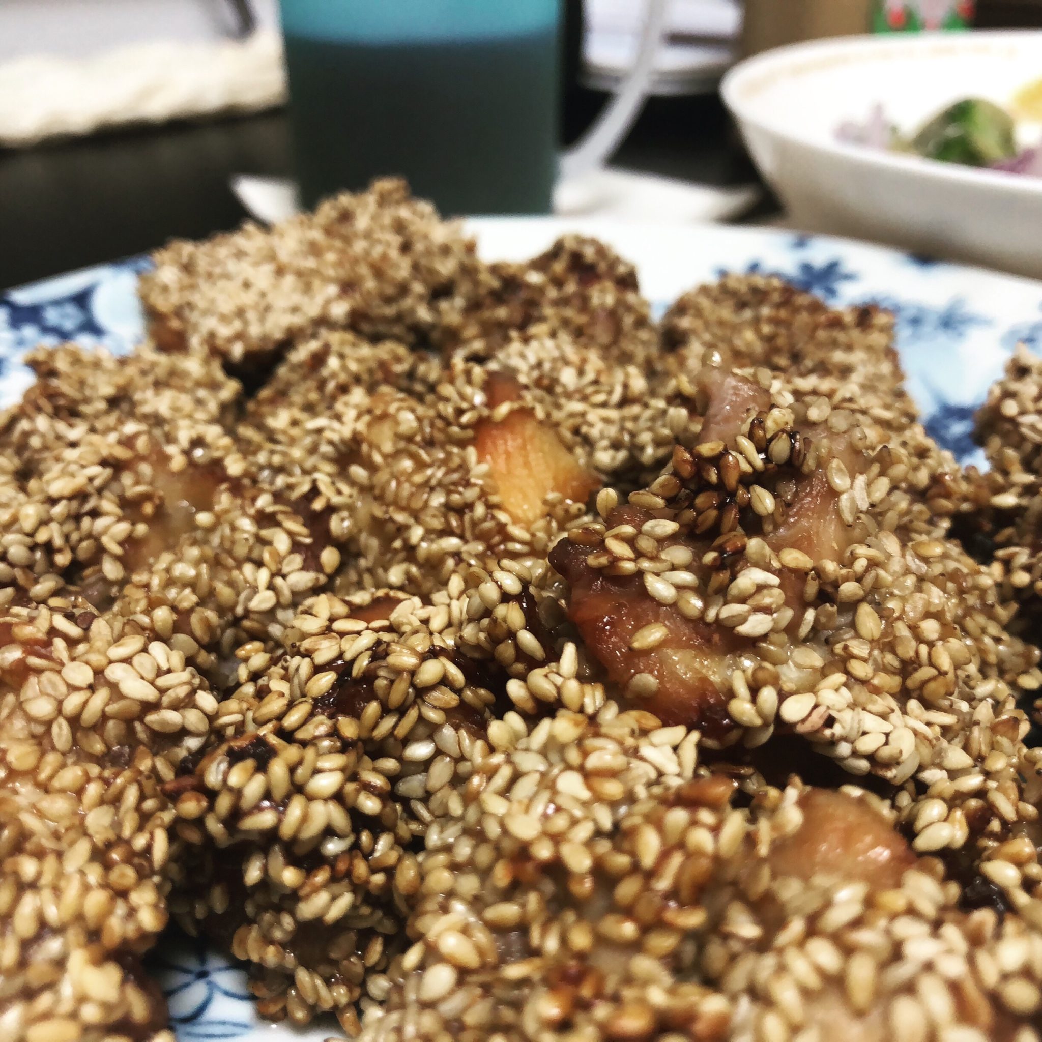 トリにゴマをまぶしてノンフライヤーに投入すると最強メニューができます。超うまい。ありがたやありがたや。
