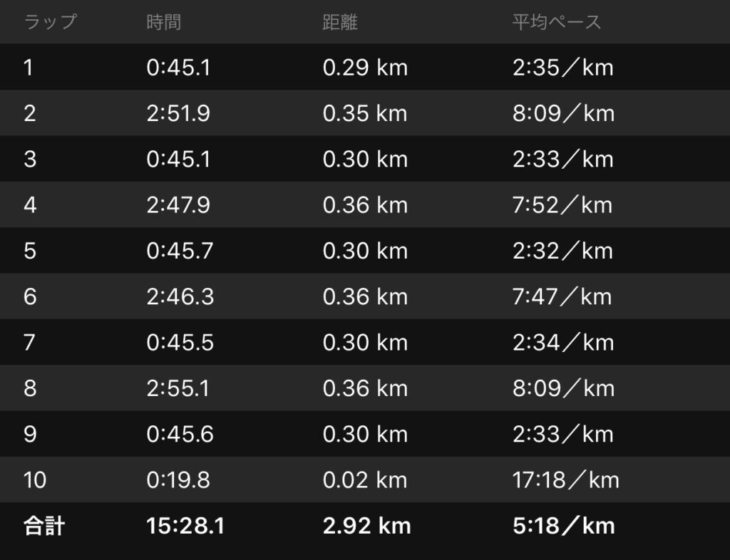 良かった点は46”かからなかったことと、リカバリで3分過ぎなかったことかな。。。