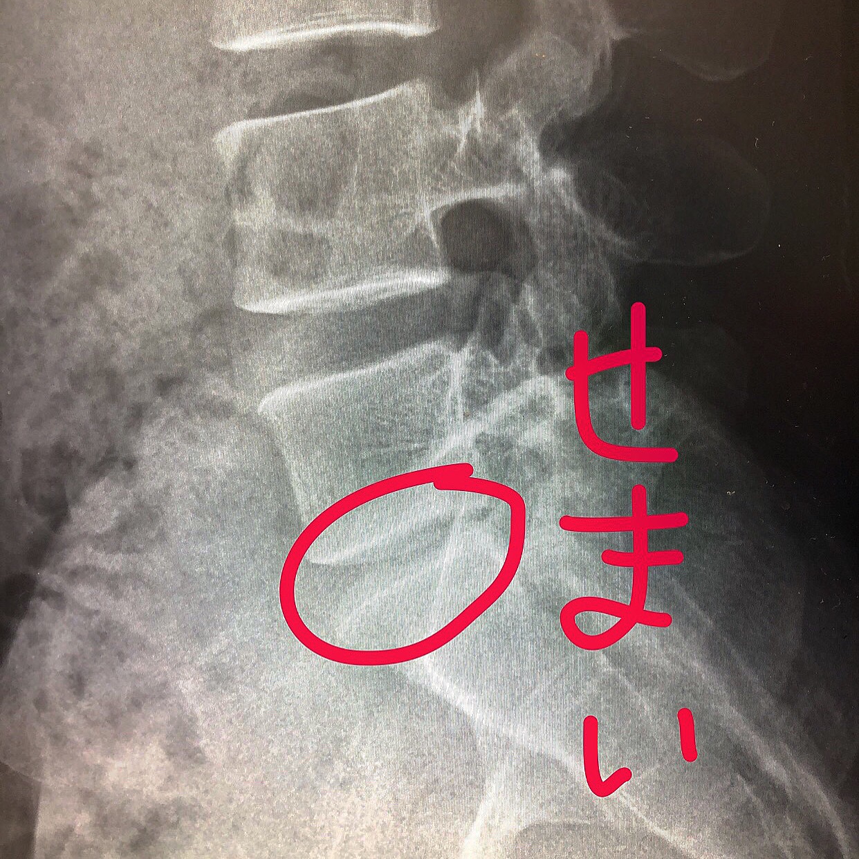 腰椎の1つの間隔が狭い(ヘルニア)ので腰に負担がかかりやすく腰痛がおきて、更に腰の痛みが脚にきているのだろう、とのこと。
