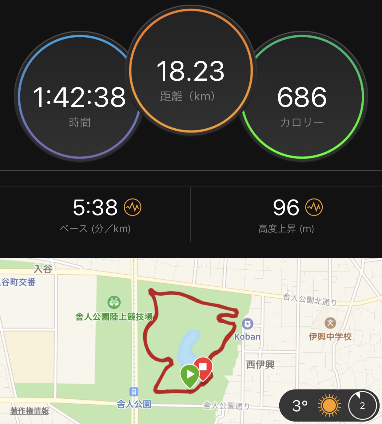寒波襲来でガチガチに着込んで走り出したけど寒すぎる。足裏が一向に温まらなくて苦労した。。