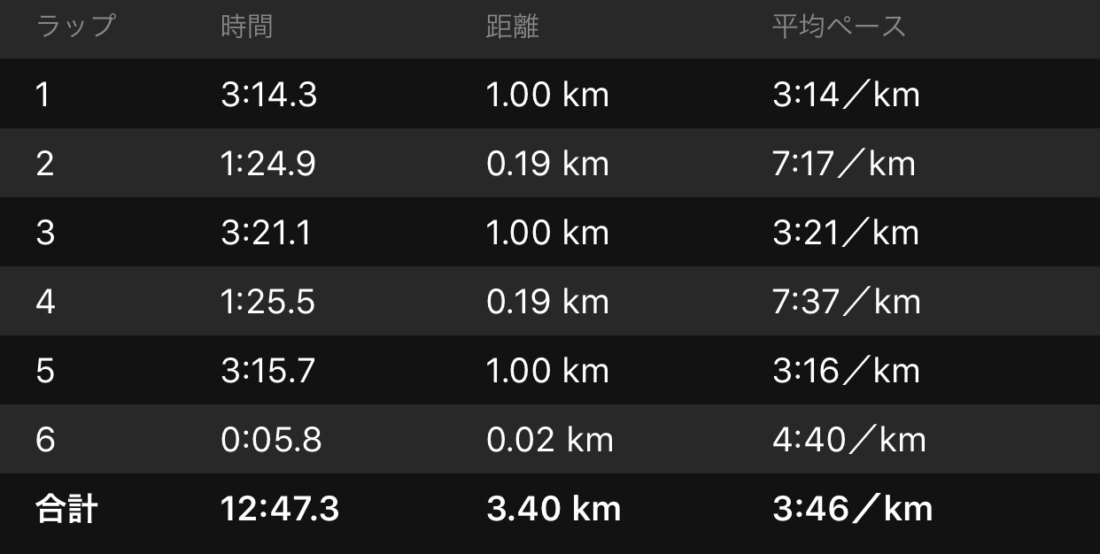 さておき、最初は5本やるつもりだった1000mは残念ながら3本で沈没。
