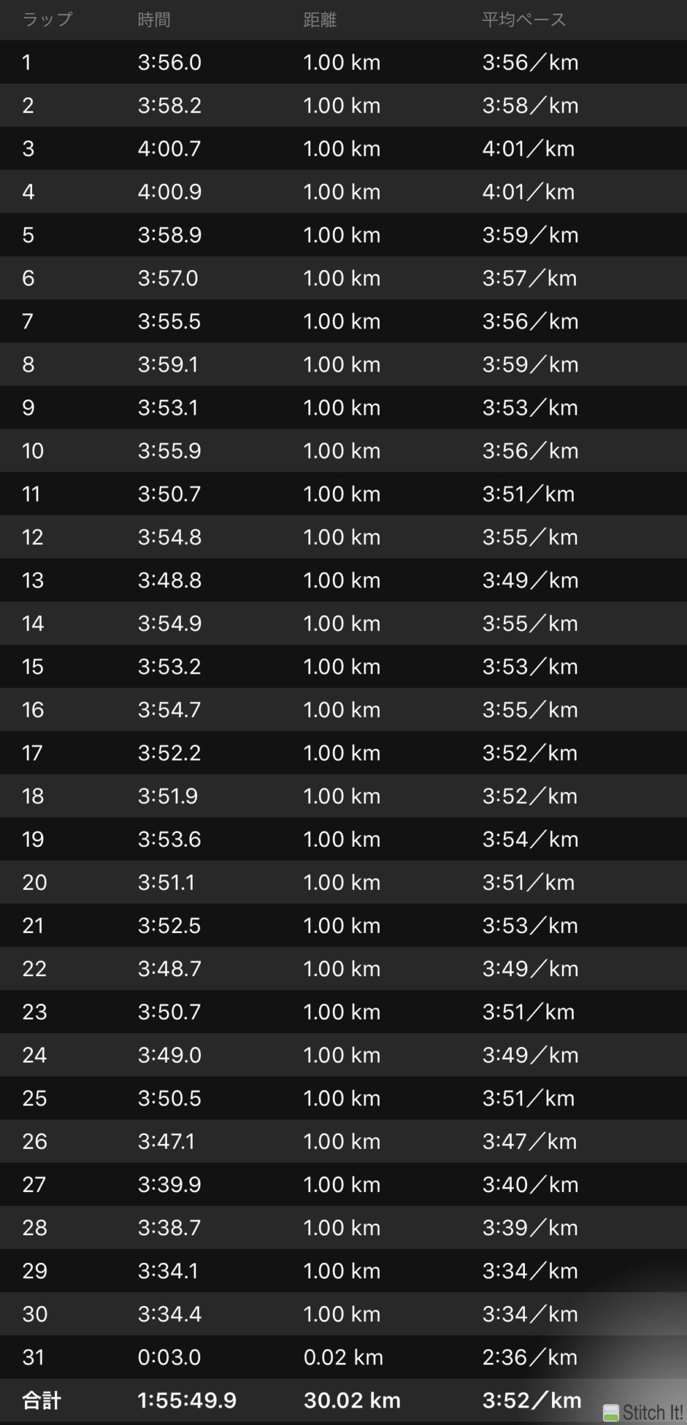 最後は余裕ゼロだったので正直東京マラソンに向けて2:35カットの目処が立ったかと言われると立ってないかなー。3’40/kmで42kmを押し通す力があるとはちょっと思えない。。。