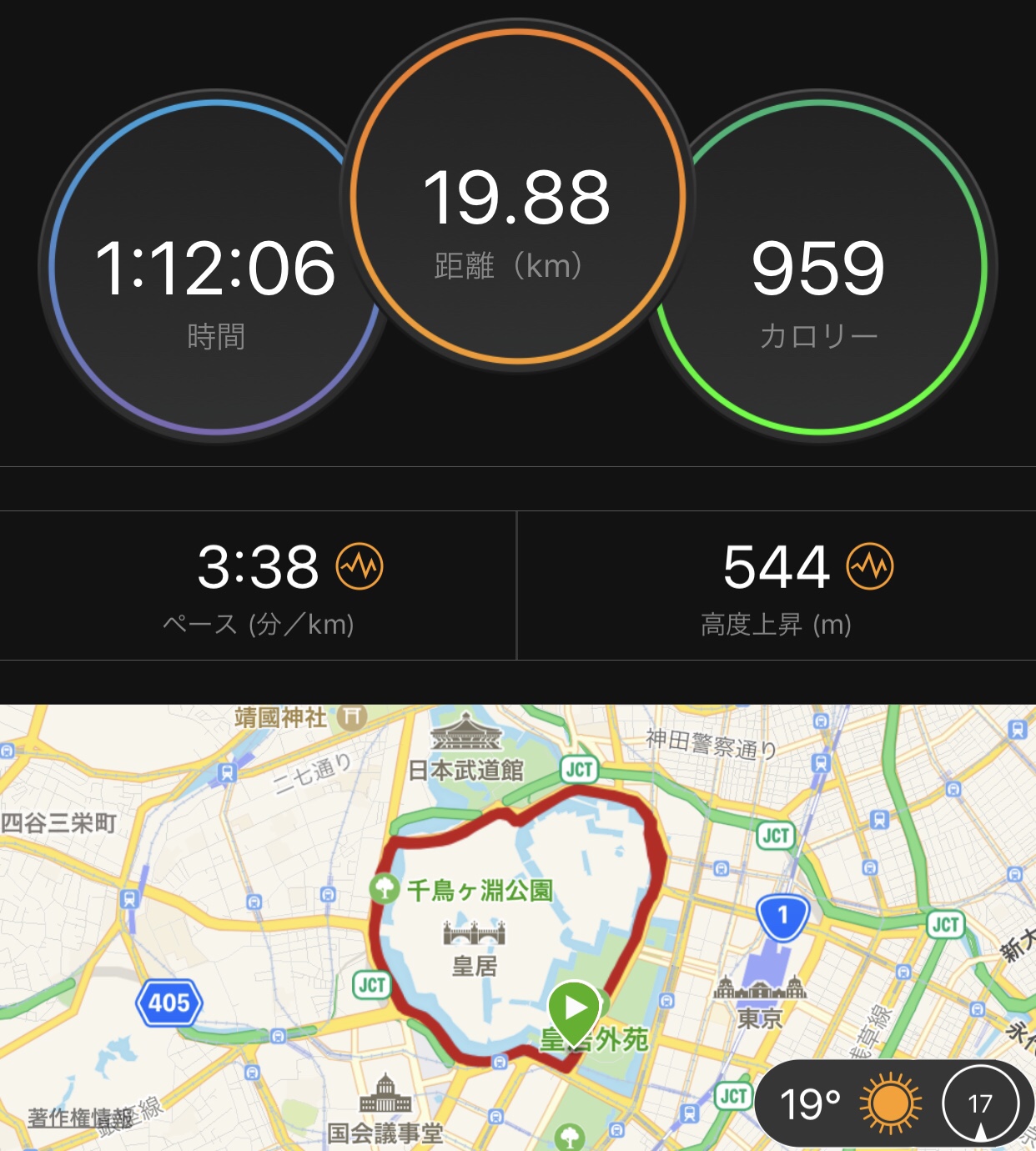 桜田門から300mぐらいのとこをスタートにしてるんだけど、竹橋を過ぎてからの2km地点過ぎにある上り坂を如何に攻略するか。