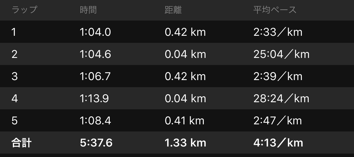 しかし1500mPBのときの1200m通過タイムと今回のトータルタイムはほとんど変わらないので、まあ今の走力が知れたというところですな。