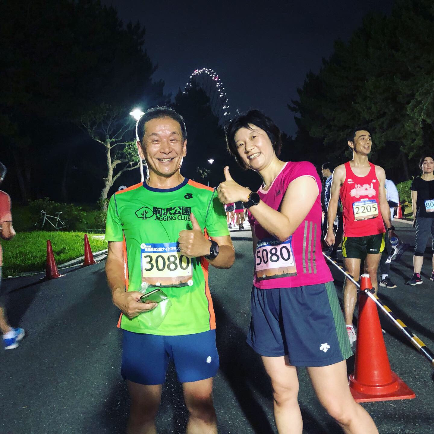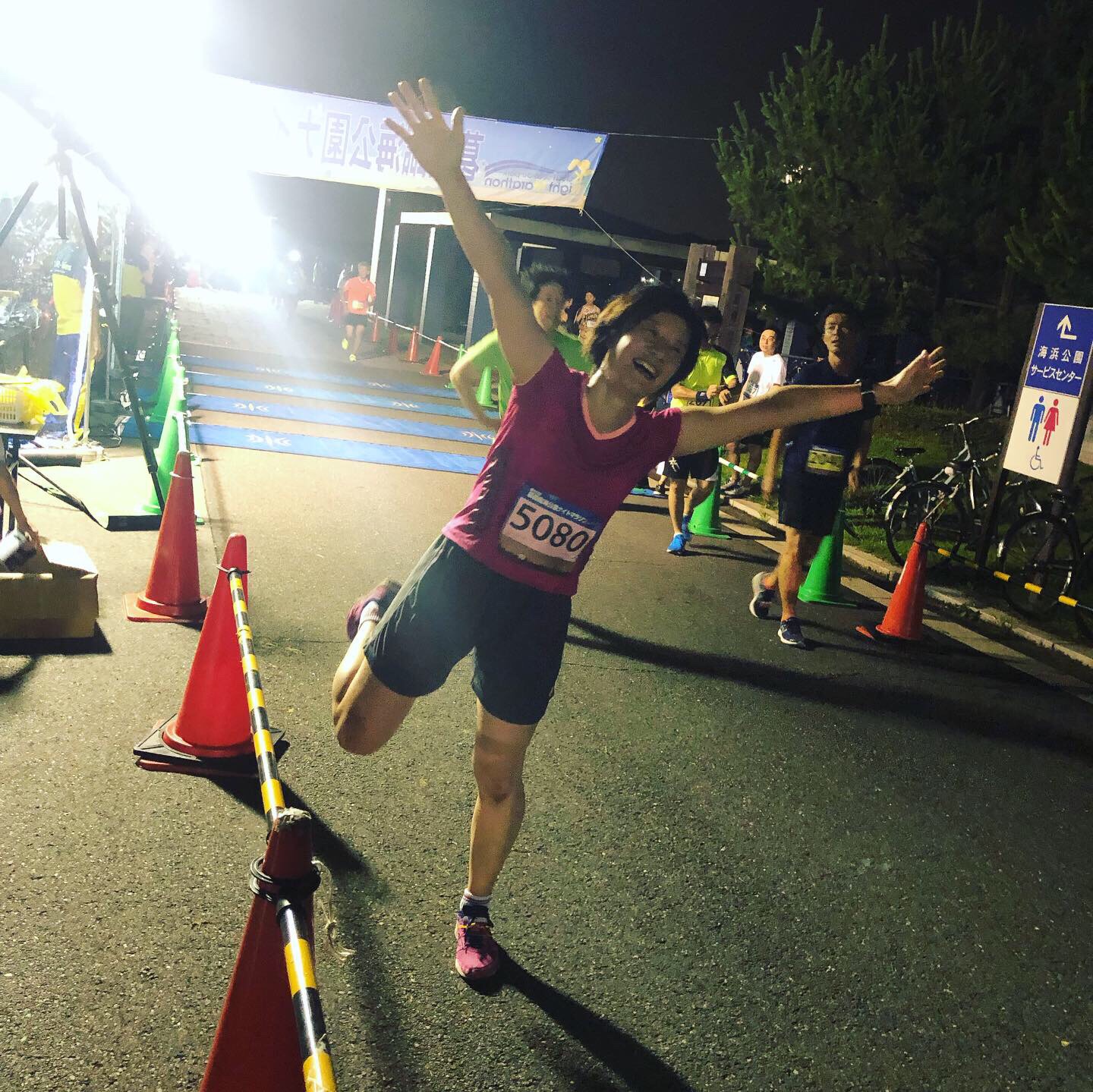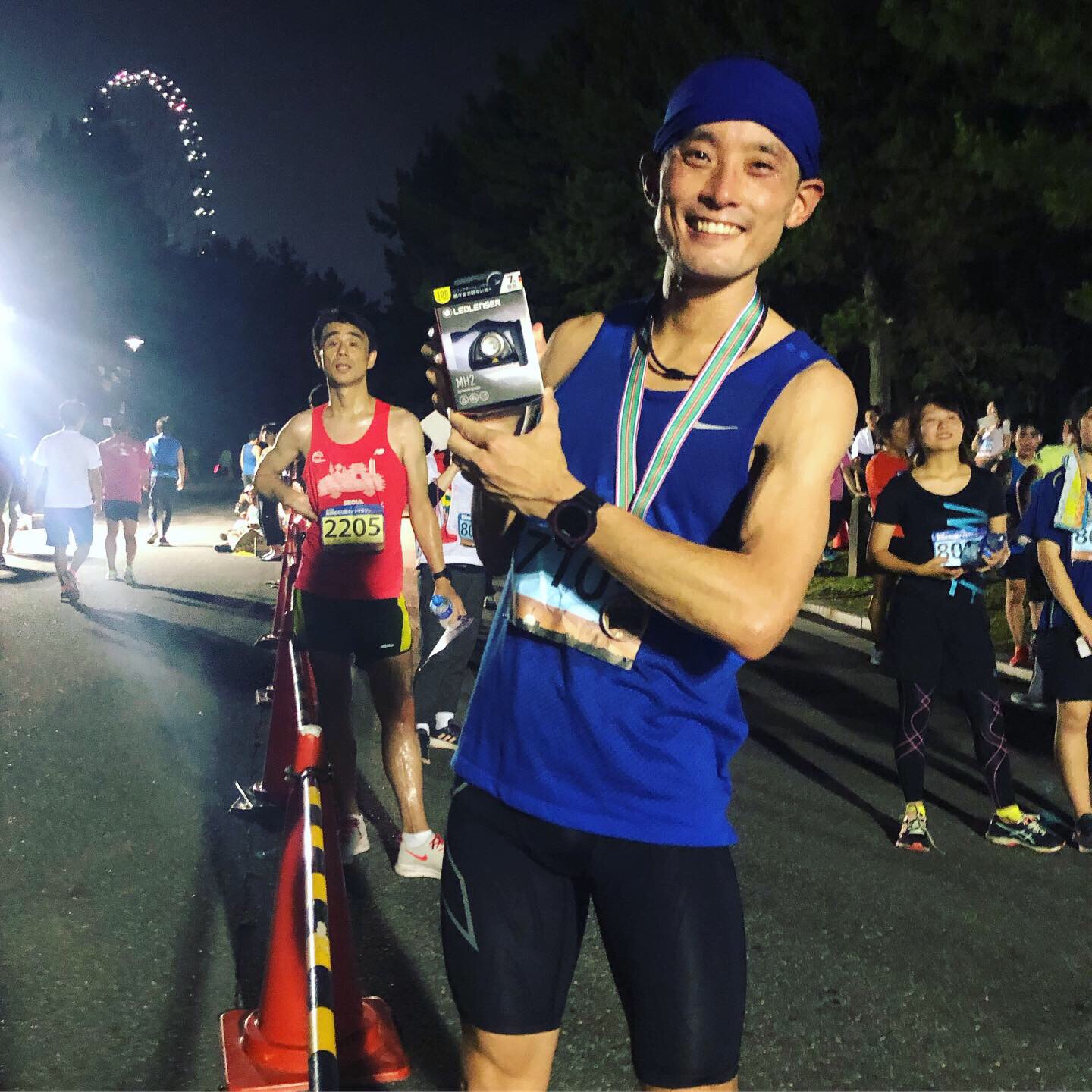 スタートして300mで集団が5〜6人。暗いうえにアップダウンがあって怖い。道が見えないww