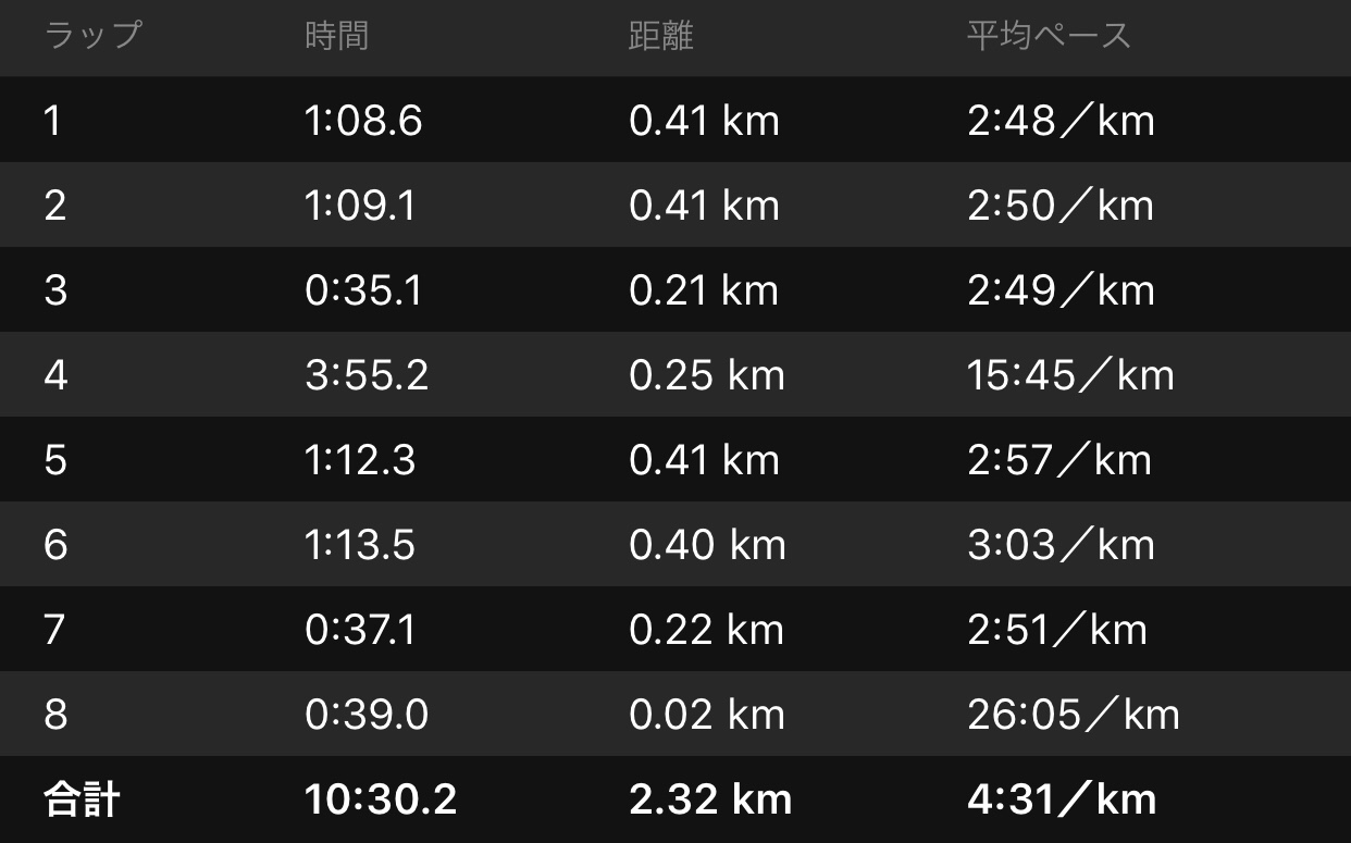 設定は3分だったけど「気負わず感覚に任せる」をテーマにスタートしたら400m通過が68″だったのでそのまま行ってみることにした。