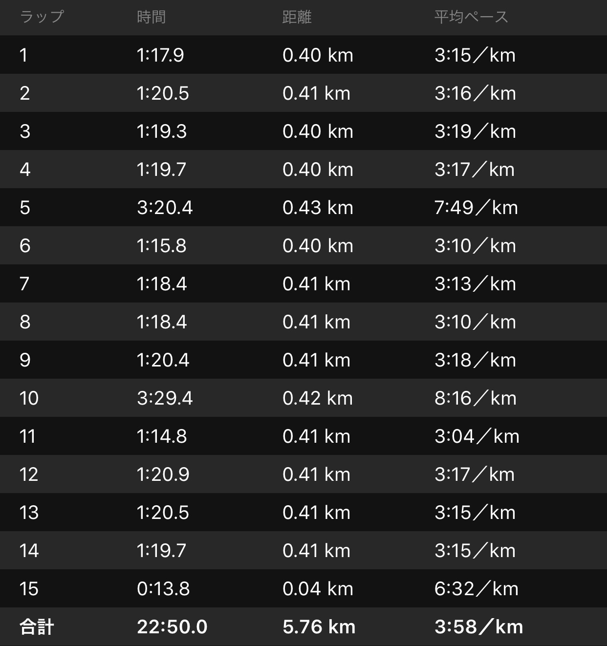 ロングシーズンに入ったのでインターバルを1200m→1600mに伸ばした。ホントは4本でたぶんこなせたと思うけどやめておいた。