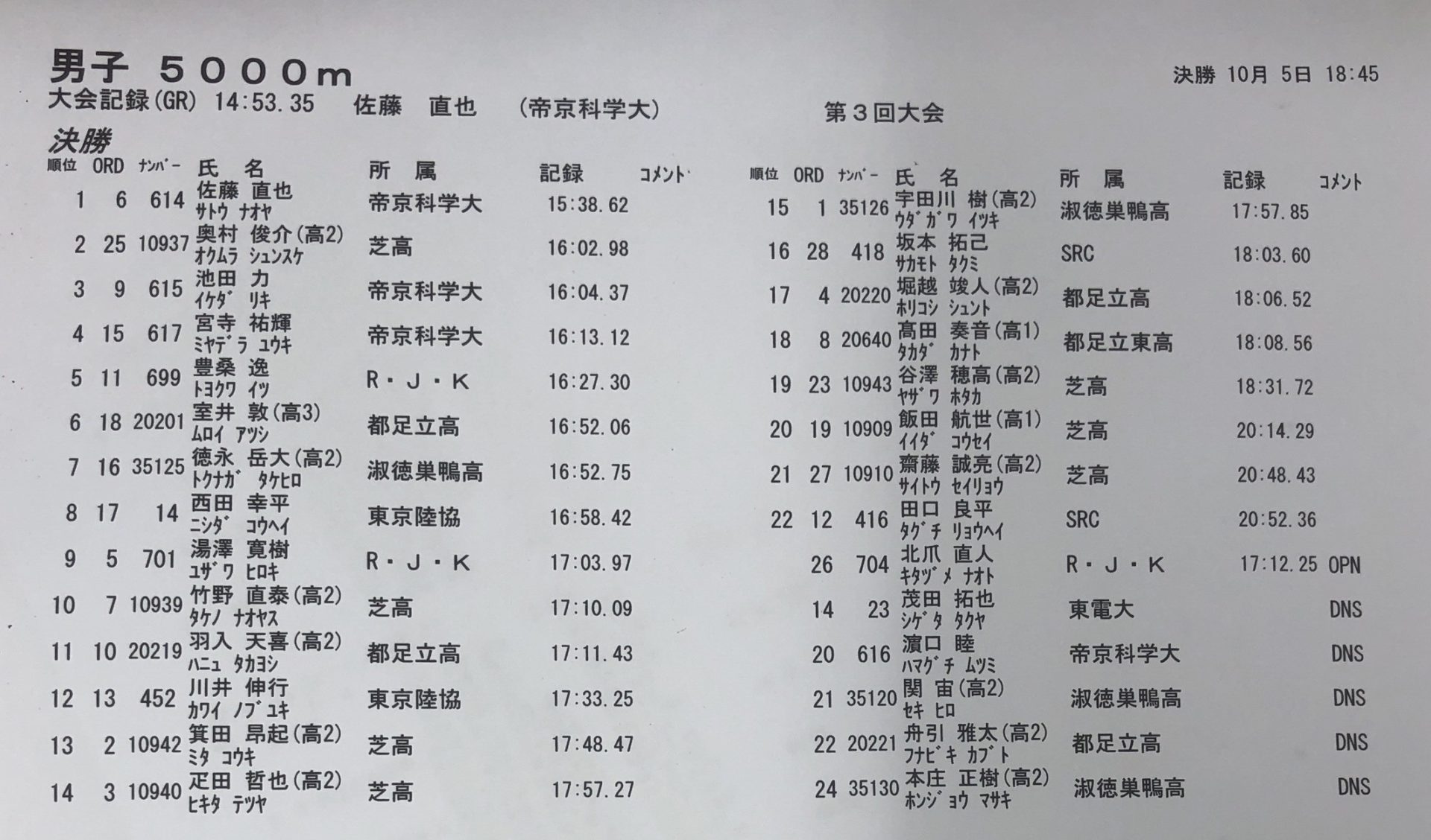 一方で当日1500mに初挑戦したRJKトモヤ(18)は、5000mは16分ヒトケタで走れるのに1500mは4’40かかっていた。