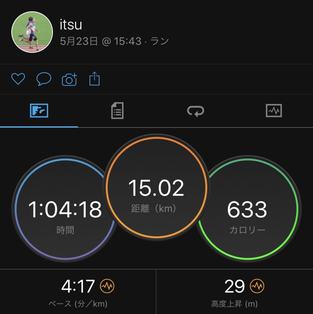 お腹が重い。とりあえず走りきれればいいやという気持ちでスタート。4’30~4’20前後で推移してそのまま完走しようと思っていたのだが、