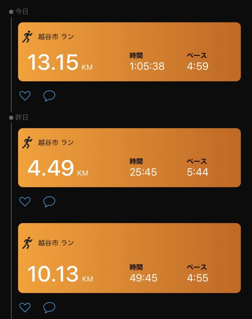 夕方もうちょい走るつもりだったけど視界が怪しくなって身体もヘロった感覚になり、脚もプルプルしてたので撤退。疲れてんだな。うん。
