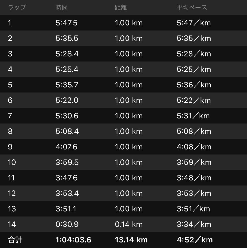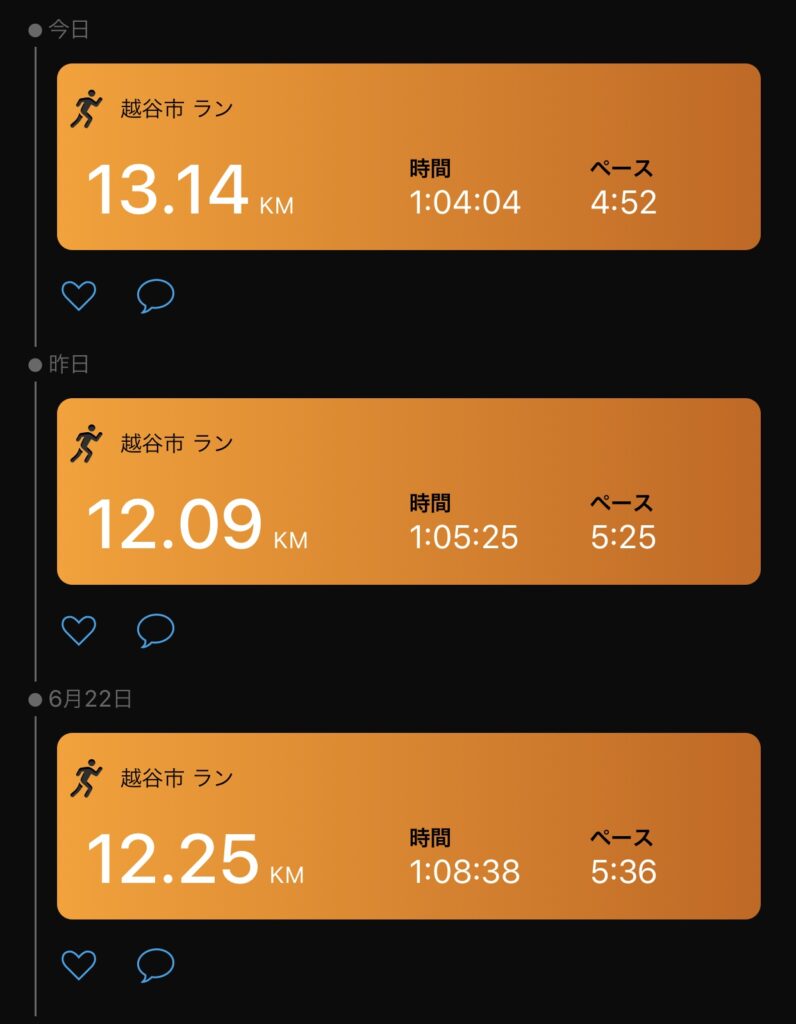 で、6/24は全く問題なし。最後は3’50/km前後までペースが上がった。