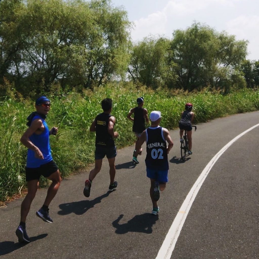 サバイバル。誰からともなくペースが上がりキロ4を切る。ああ始まってしまった。とにかく暑さを忘れて集中するしかない。暑いと感じたら終わる。ただついていく。