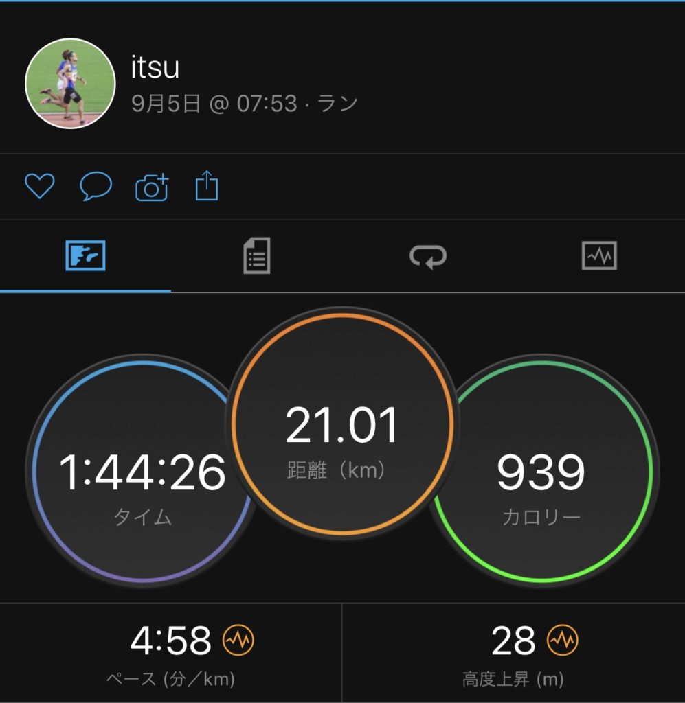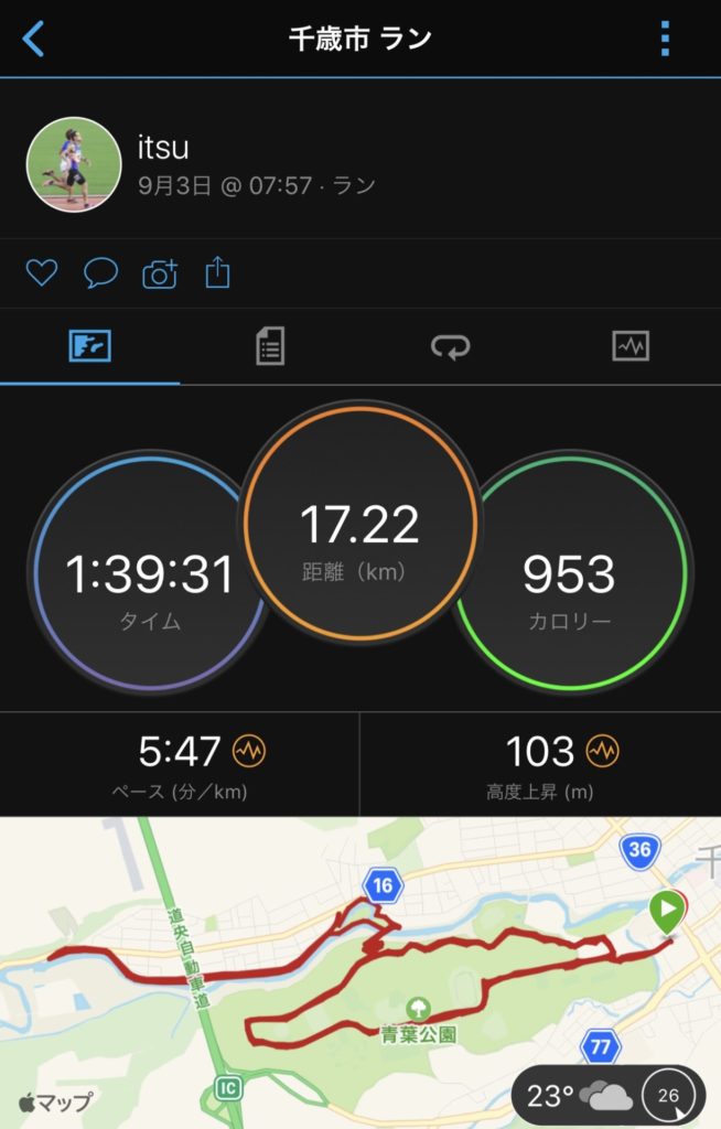 16kmあたりから嫁さんに置き去りにされて最終的に200m以上の差を付けられて天を仰いだ。