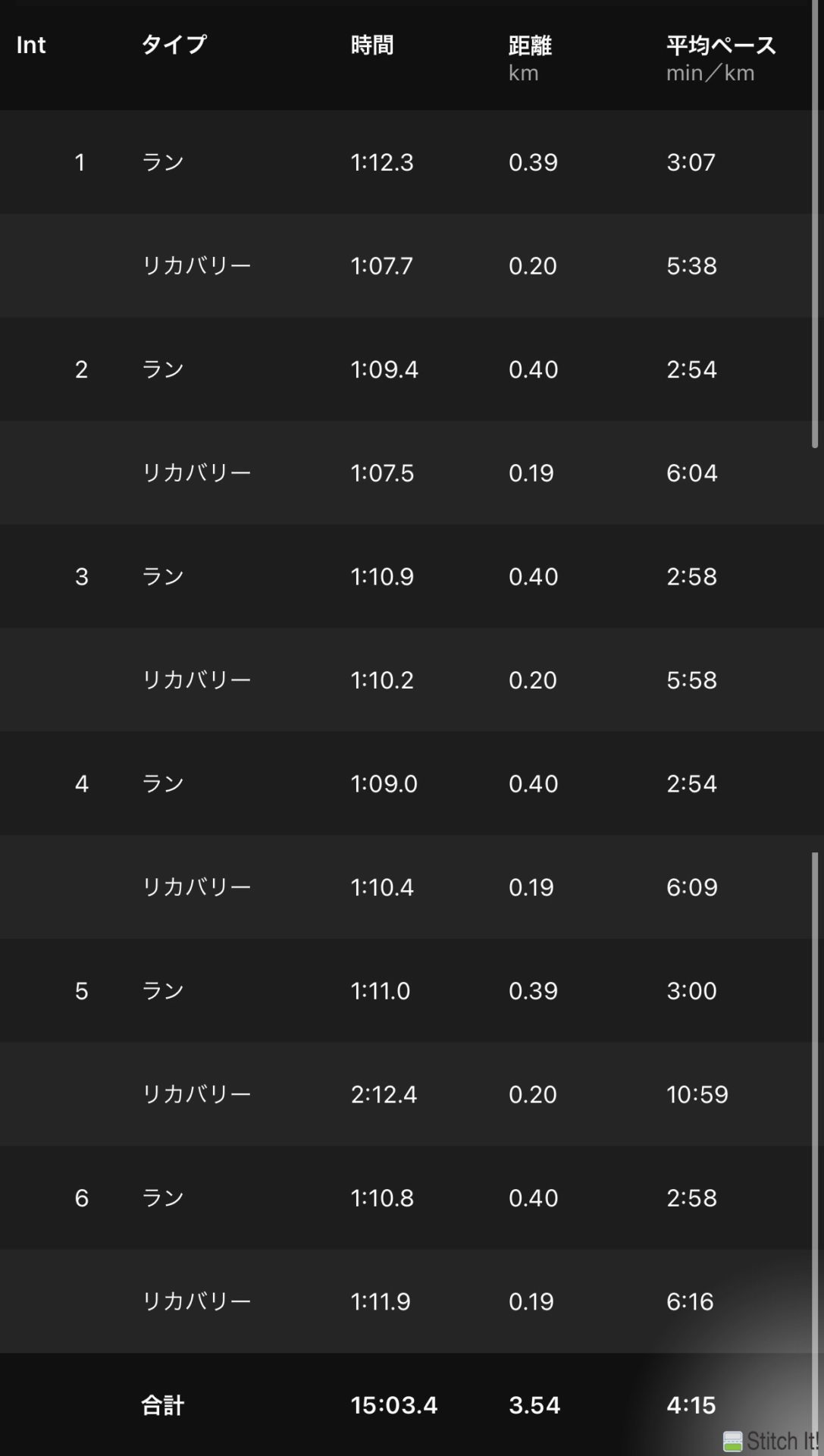 400mは5本で死亡してしまったので歩きでつないでどうにか6本。rest入れて2000mと思ったけど3’30で入ろうと思ってたのに3’22で入ってしまって脚がもたずDNF。