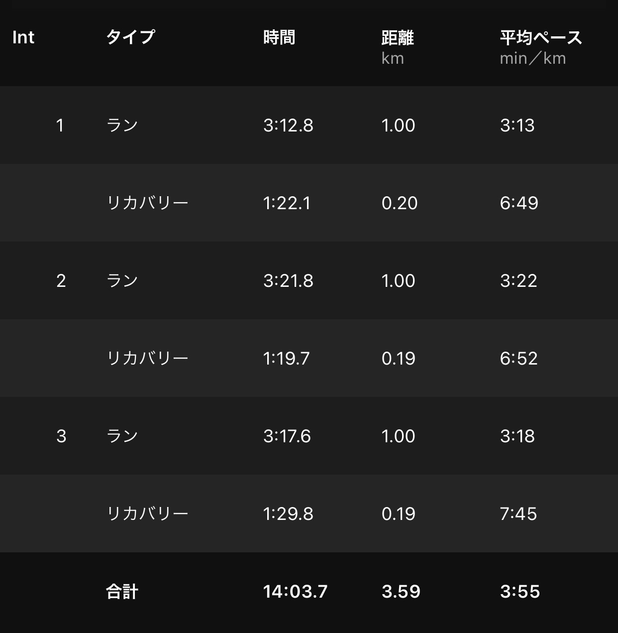 一方でスピード系がダメ過ぎる。寒さが厳しくなったせいもあるのか感覚が狂ってて、5本やるつもりが3’12で入ってしまって最近の状態からは速すぎるタイム。