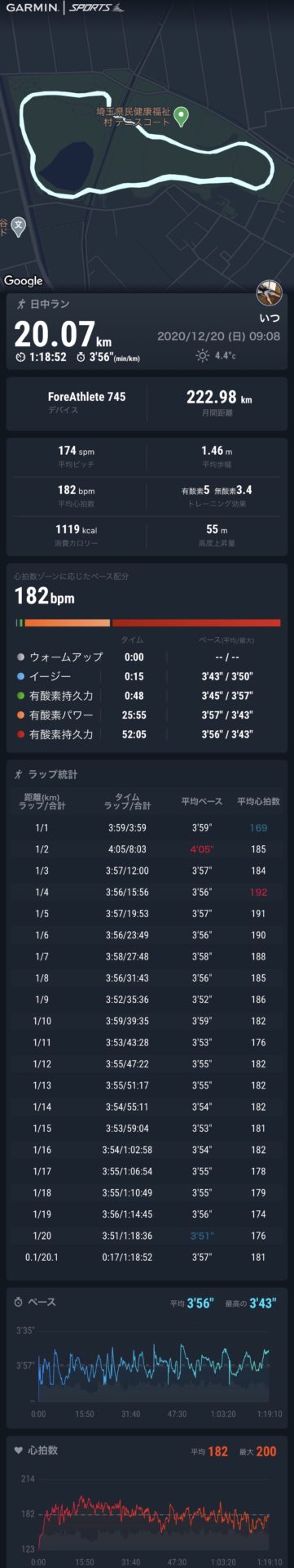 キイチさんとカモメさんと嫁さんで走った。俺とキイチさんは20km。集合時間ギリギリだったのでアップはほぼ無しw