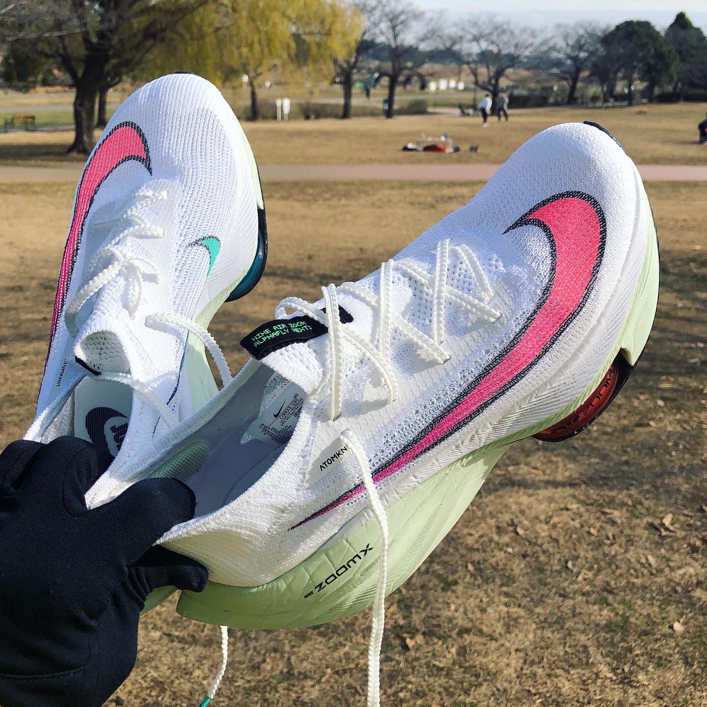 メンバーのたくチョゲからNikeのアルファフライを譲り受けた。靴底が肉厚すぎてギャグみたいだ。その実力やいかに、ということで1000mで履いてみた。