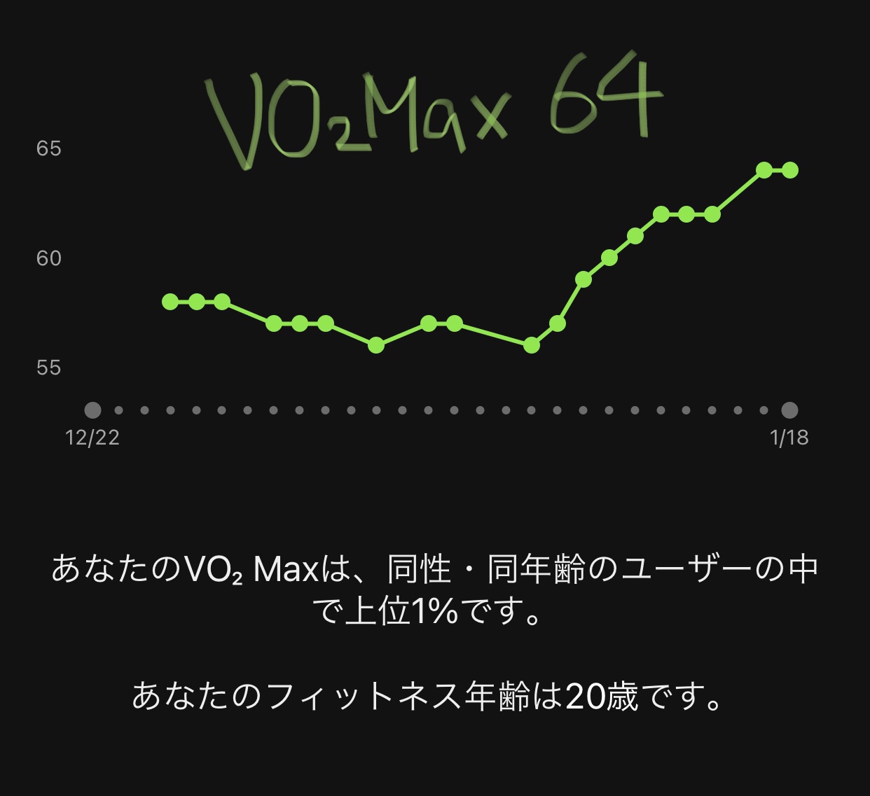 VO2Maxの判定値をもとにした想定タイムが面白くなってきた。