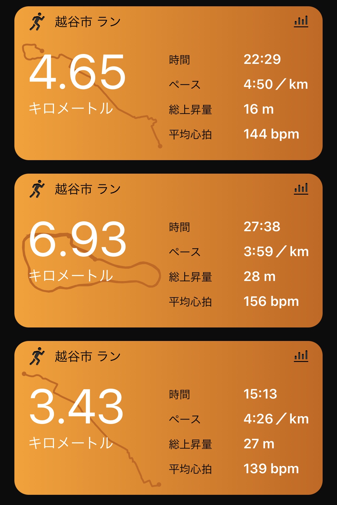 …というわけで今日は200m×3で心拍を高い状態にしてから速くはないペースで5.4km。強度が低い割にフィットネスが高まるんではないかという狙い。