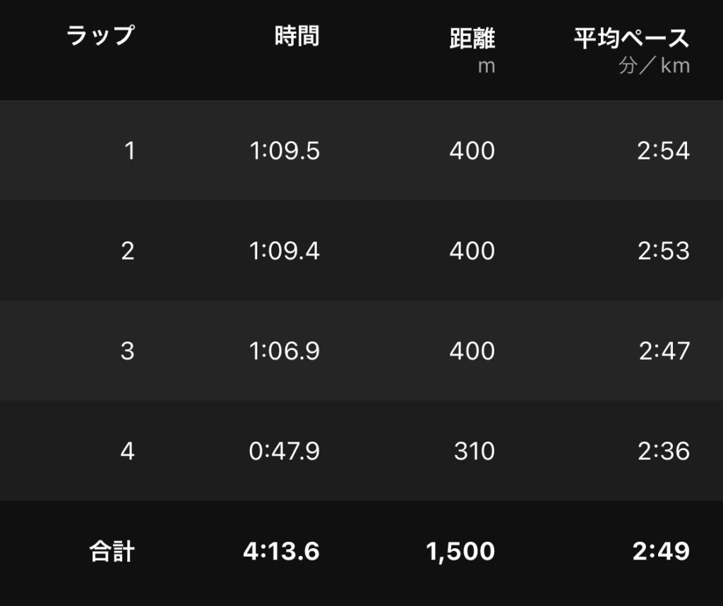 相変わらず自分の走ってる姿はコレジャナイ感がすごいw 少しは前傾をモノにしたかと思いきや全然だし、ラスト150mあたりで油が切れた機械(またはピヨピヨ)になってるし。