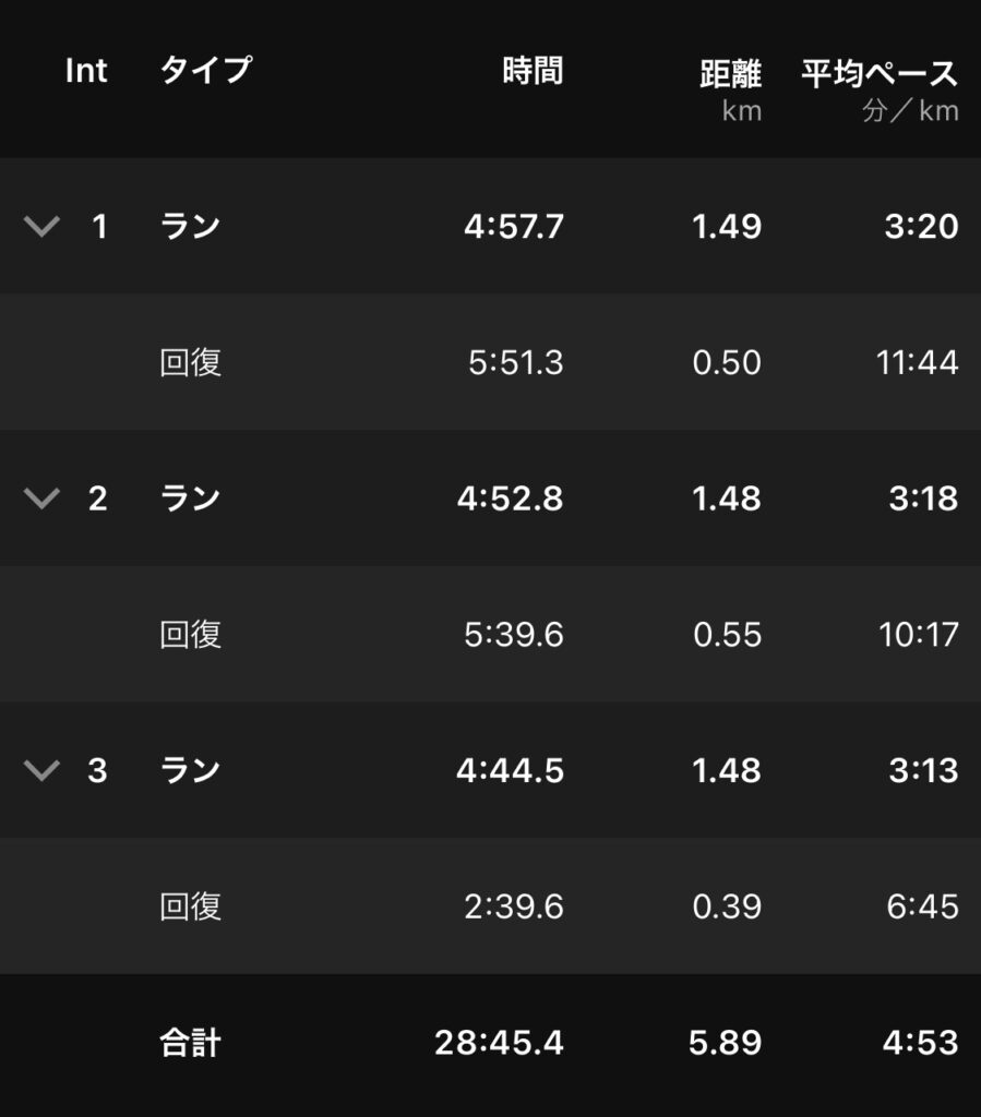 今回も3周ペーランかなと思ったら1480m×3。こういう内容も最近できてなかったから良い。