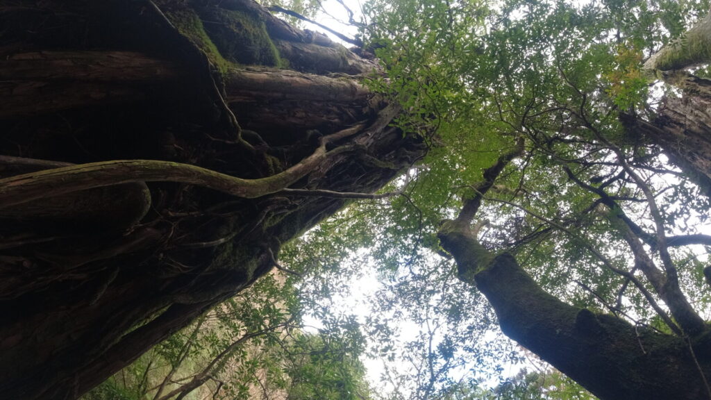 そしてついに辿り着いた縄文杉。縄文杉のエリアに到達したと同時にまわり中に霧がたちこめてラスボス的な雰囲気はバツグンだ。ちょうどこのエリアだけスマホの電波がつながったので親にLINEで「縄文杉着いたよ、オバケみたい」って送ったら「御神木やぞ」って怒られた。そりゃそうかw