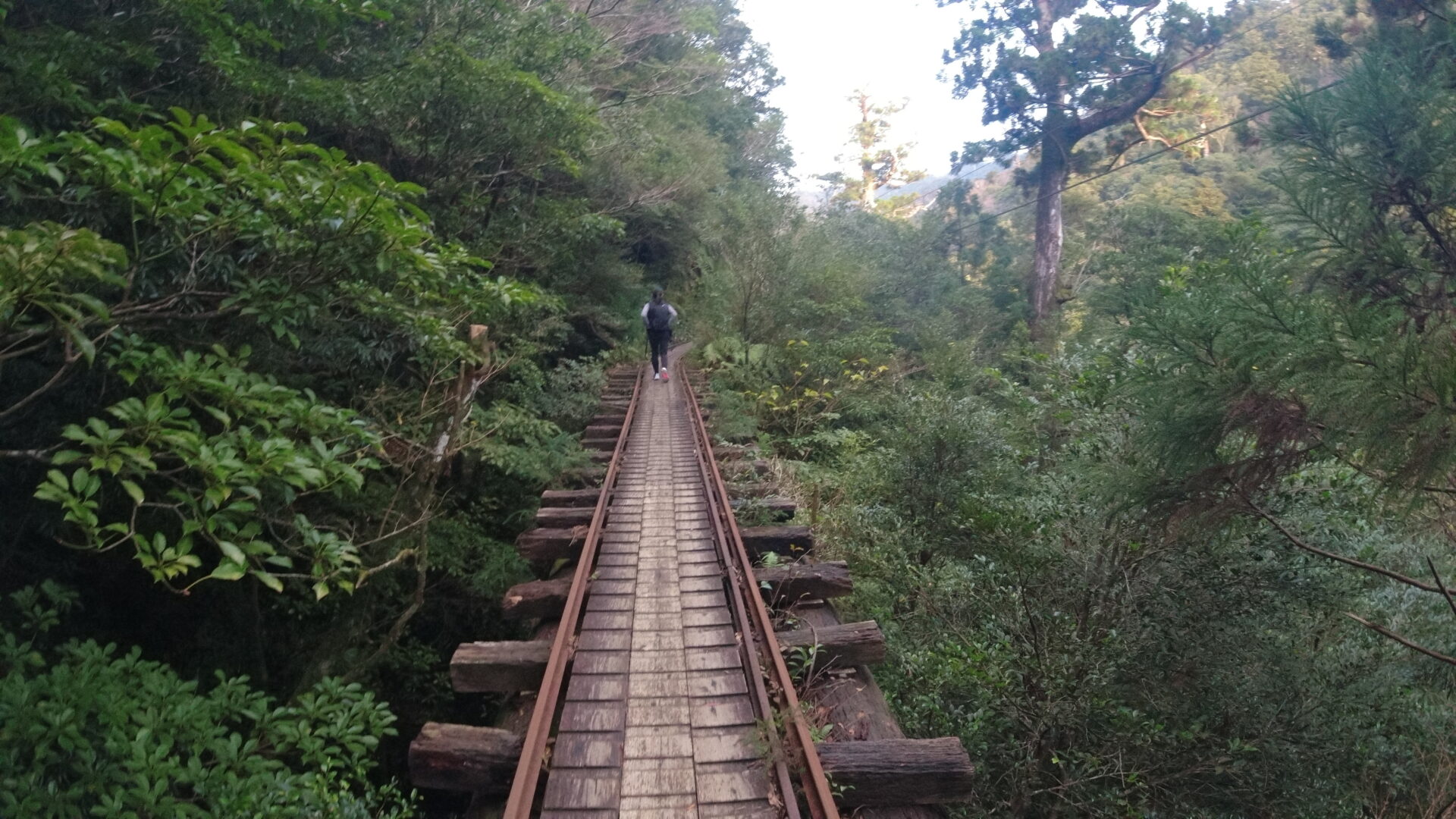 縄文杉まではここから約8kmのトロッコ道のあと2.5kmの登山道。かつては伐採した木を運搬するために使われていたが、今は観光地として各所にあるお手洗いのし尿搬出のために使われているそうな。